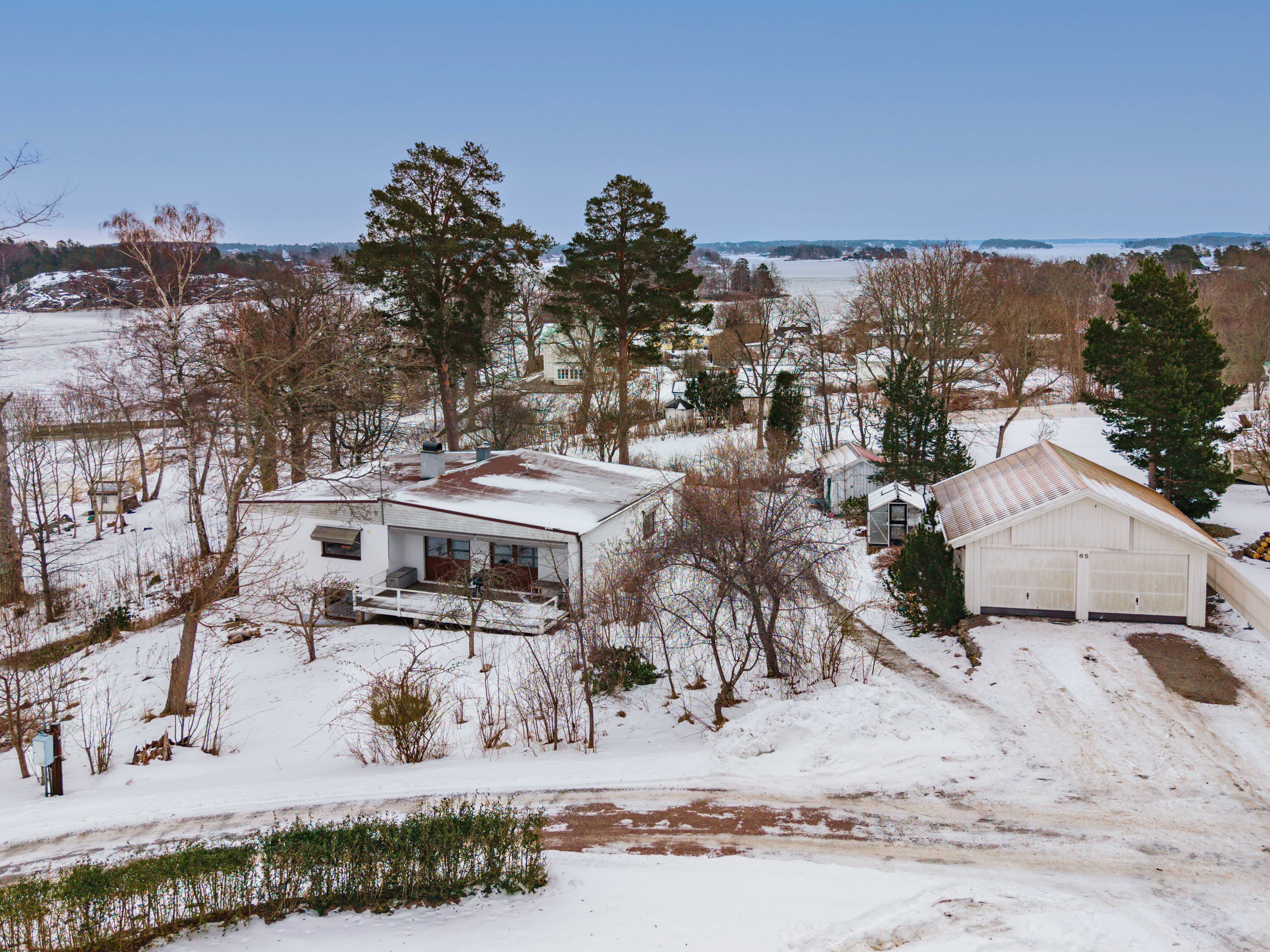 På tomten finns även ett dubbelgarage som ger dig gott om plats för fordon och förvaring. Ditt inglasade växthus ger dig möjlighet att odla egna grönsaker och blommor året runt, medan det inbjudande badhuset vid sand- stranden/bryggan erbjuder en perfekt plats för avkoppling och bad. Med segelbåtsdjup vid bryggan kan du enkelt ta ut din båt och utforska vikens många hemligheter.