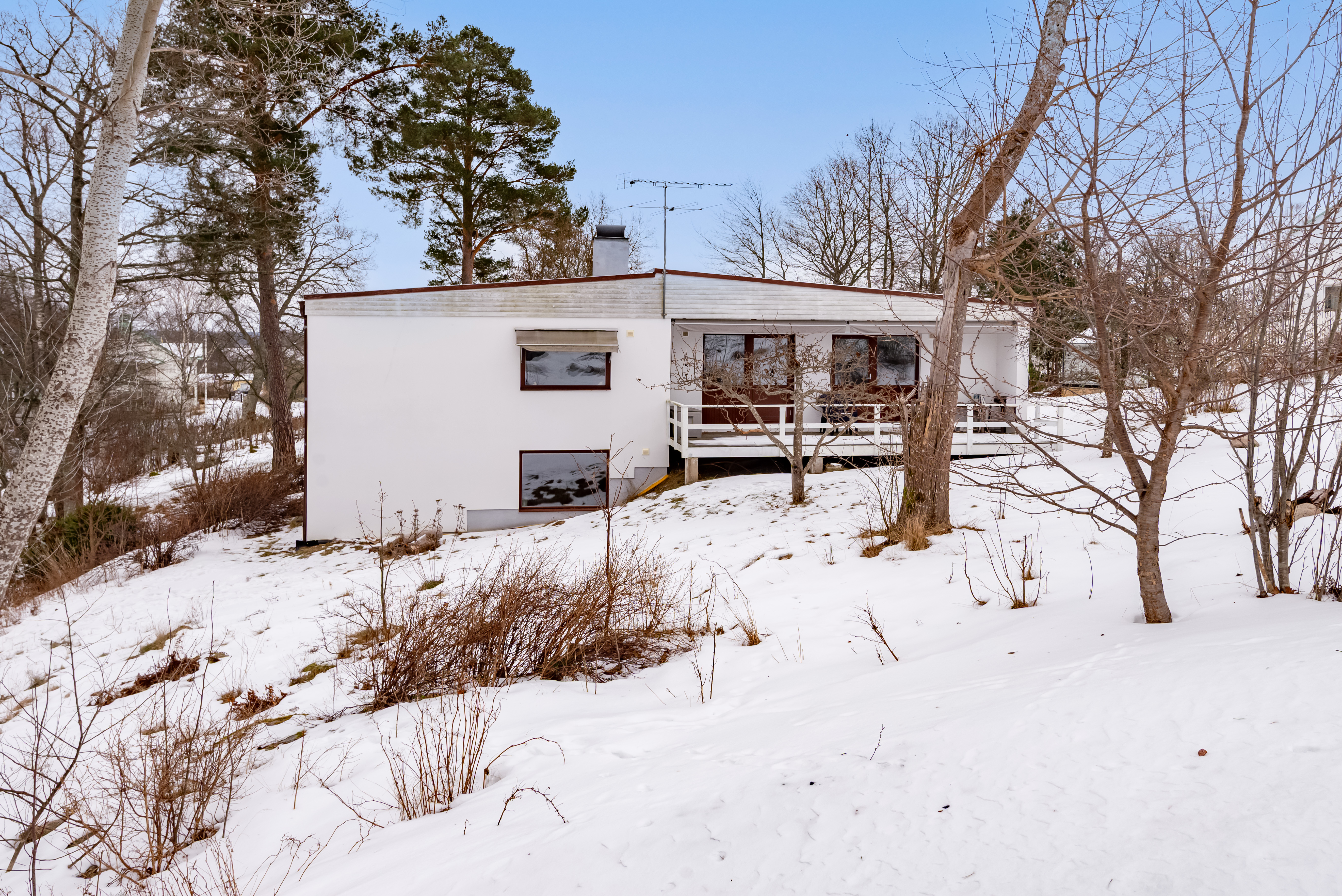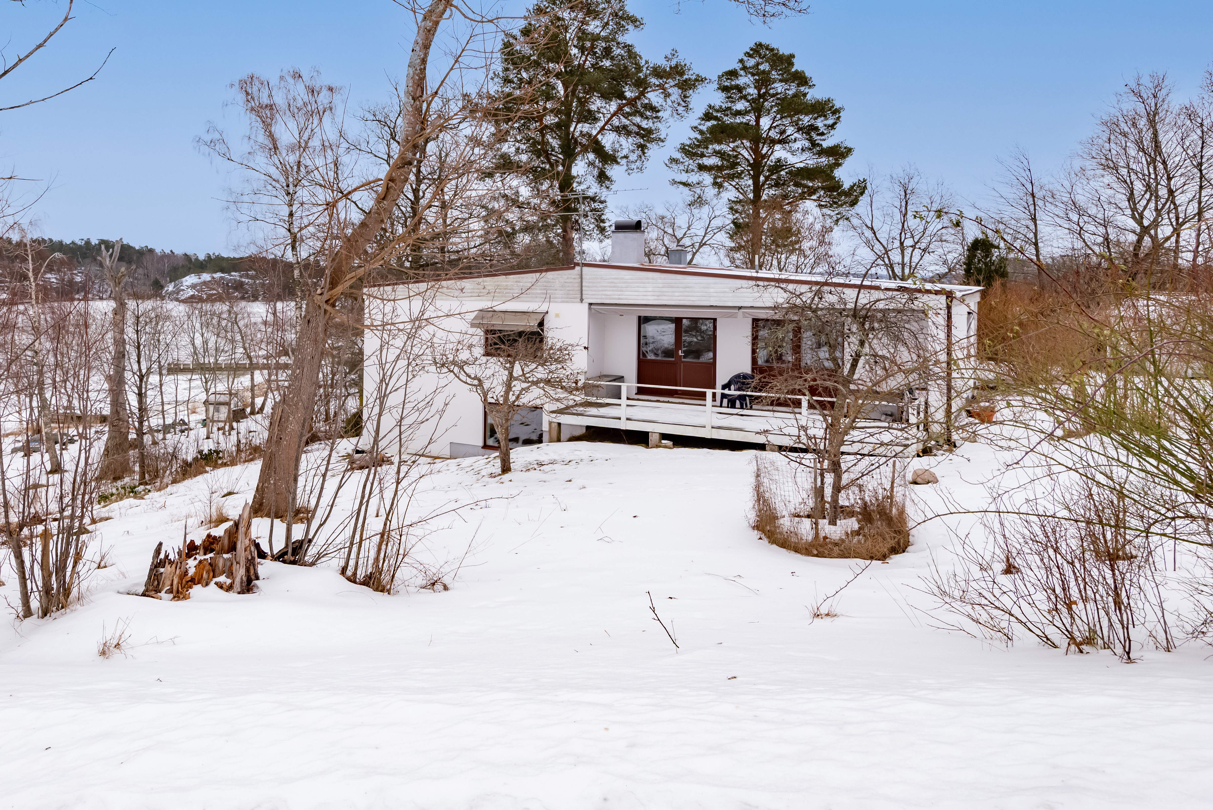 Här finner du en huvudbyggnad med potential från 70-talet, som erbjuder en perfekt bas för både sommaräventyr och vinter mys. Med stora fönster som bjuder in ljuset och en fantastisk utsikt över viken blir varje dag en ny upplevelse.