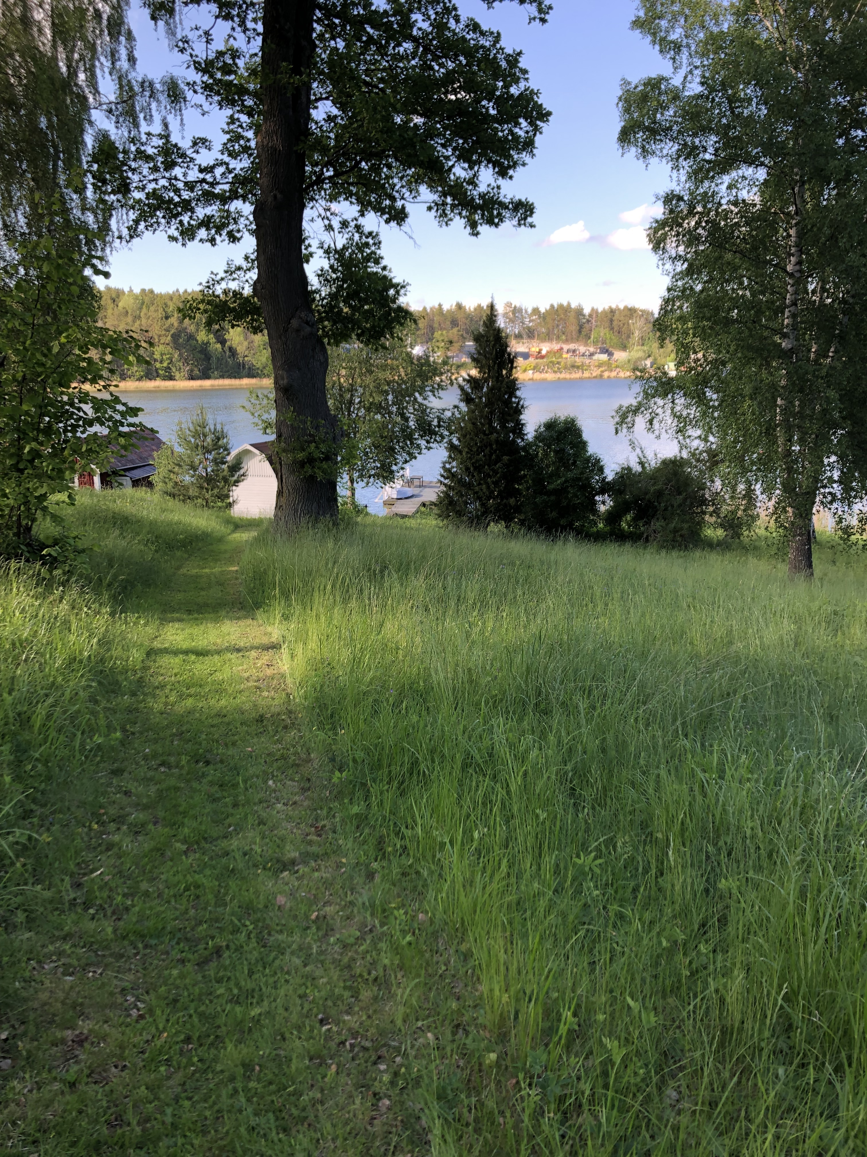 Denna förtrollande sjötomt sträcker sig längs en glittrande vik, omgiven av frodig grönska och majestätiska träd som skapar en idyllisk bakgrund. Det finns gamla ekar, tallar, björkar och fruktträd (körsbär, plommon, äpplen och bärbuskar)
